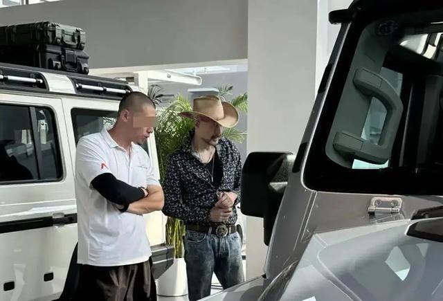 照片中的徐锦江身着印花衬衫和牛仔裤,头戴复古牛仔帽,188cm的身高加上雕塑般的体态,硬汉气质中透着一股雅痞风情,丝毫看不出岁月留下的痕迹。在挑选新座驾时,他像个孩子得到新玩具般雀跃,仔细打量车身和内饰,这份专注与喜悦被网友们捕捉。更值得一提的是,店方特意准备了一块“ALL BUY”的定制车牌,巧妙呼应了他在《鹿鼎记》中的经典角色“鳌拜”(Ao Bai音似All Buy),这个小小的彩蛋让现场气氛瞬间活跃起来。